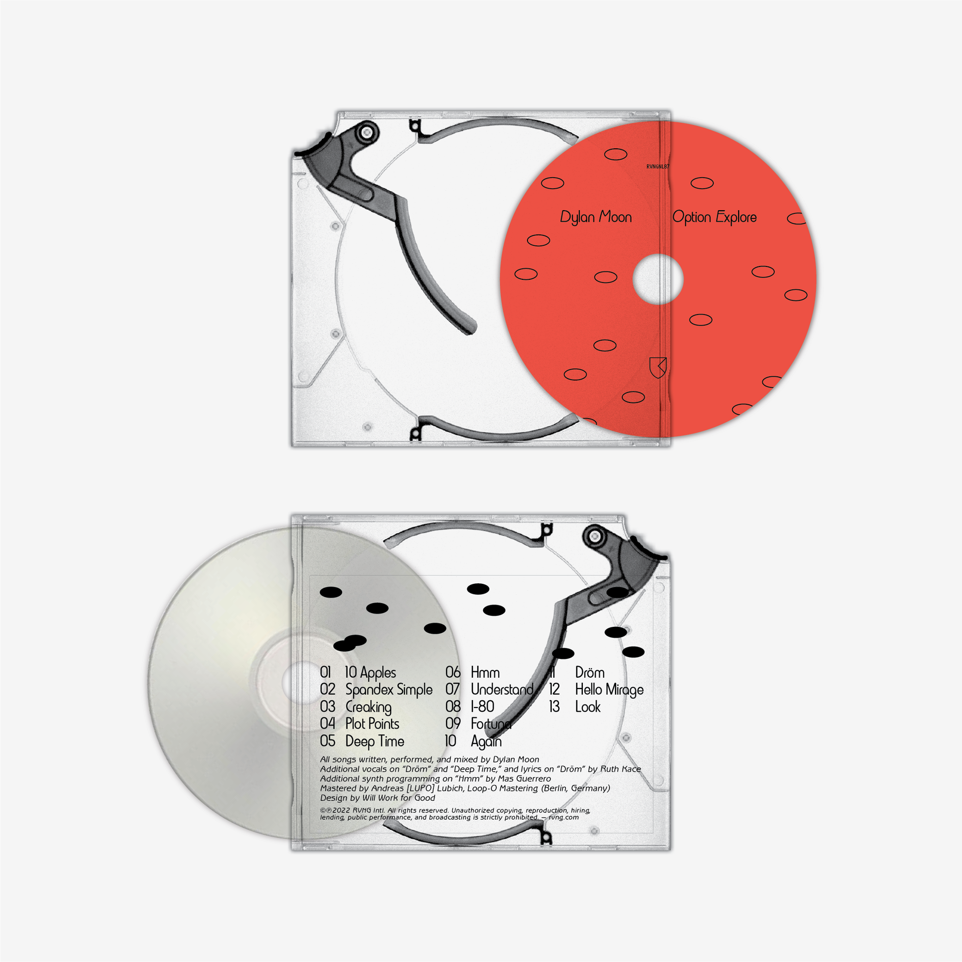 Option Explore signals a significant departure from Moon’s debut 2019 album Only the Blues, which at its heart is a folk record from the forlorn fringes of psychedelia: a little mysterious, but ultimately lucid in its internal logic and generous with standalone, but sing-along, songs. Dylan’s 2020 EP Oh No Oh No Oh No suggested both a shift in his writing and listening habits, culminating with the 2021 compilation Moon’s Toons Vol. 1. On Option Explore, Moon willfully spins multitudes. With a careful study of synthpop, a penchant for warped yet unwavering guitar grooves, and an effortless songwriting ability, he leans into unlikely convergences, and arrives at something deeply futuristic in its disregard for genre sanctity.