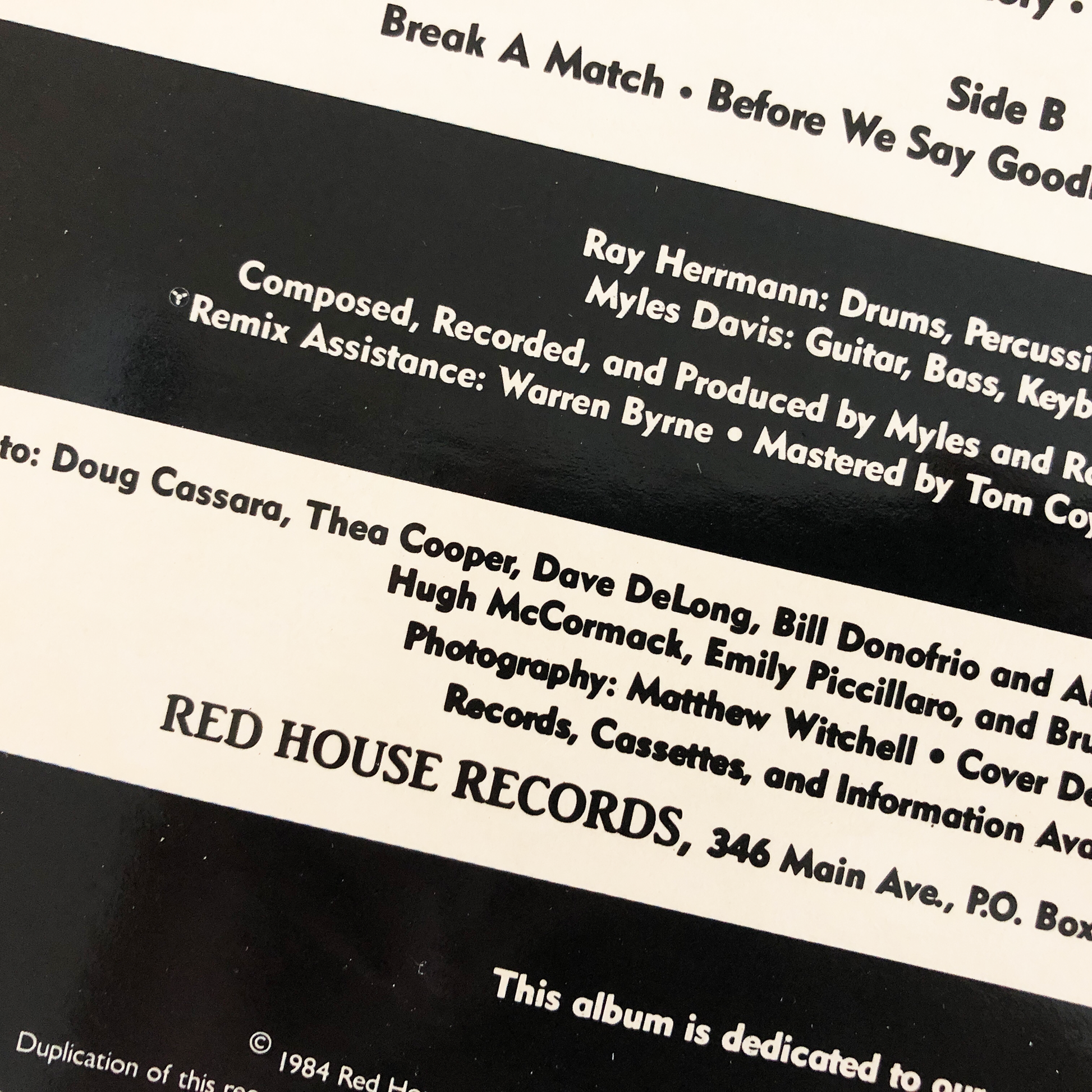 Myles and Ray took the quarter inch mixes of the eight tracks they’d invested not only their savings but their very heart and soul to legendary engineer Tom Coyne at Frankford/Wayne to master. The album was pressed on audiophile vinyl from Europadisk, and Myles designed the album cover loosely based on the makings of a WWII P-51 Mustang aircraft. Hybrid Vigor was released in September 1984 on Red House Records, Myles and Ray’s own imprint named after the house under which their music, and magic, was made. The records didn’t travel too much further from the basement, but did pick up some great college radio play. That Hybrid Vigor had even materialized was good enough for Myles and Ray, and a personal testament to the potential of collaboration.