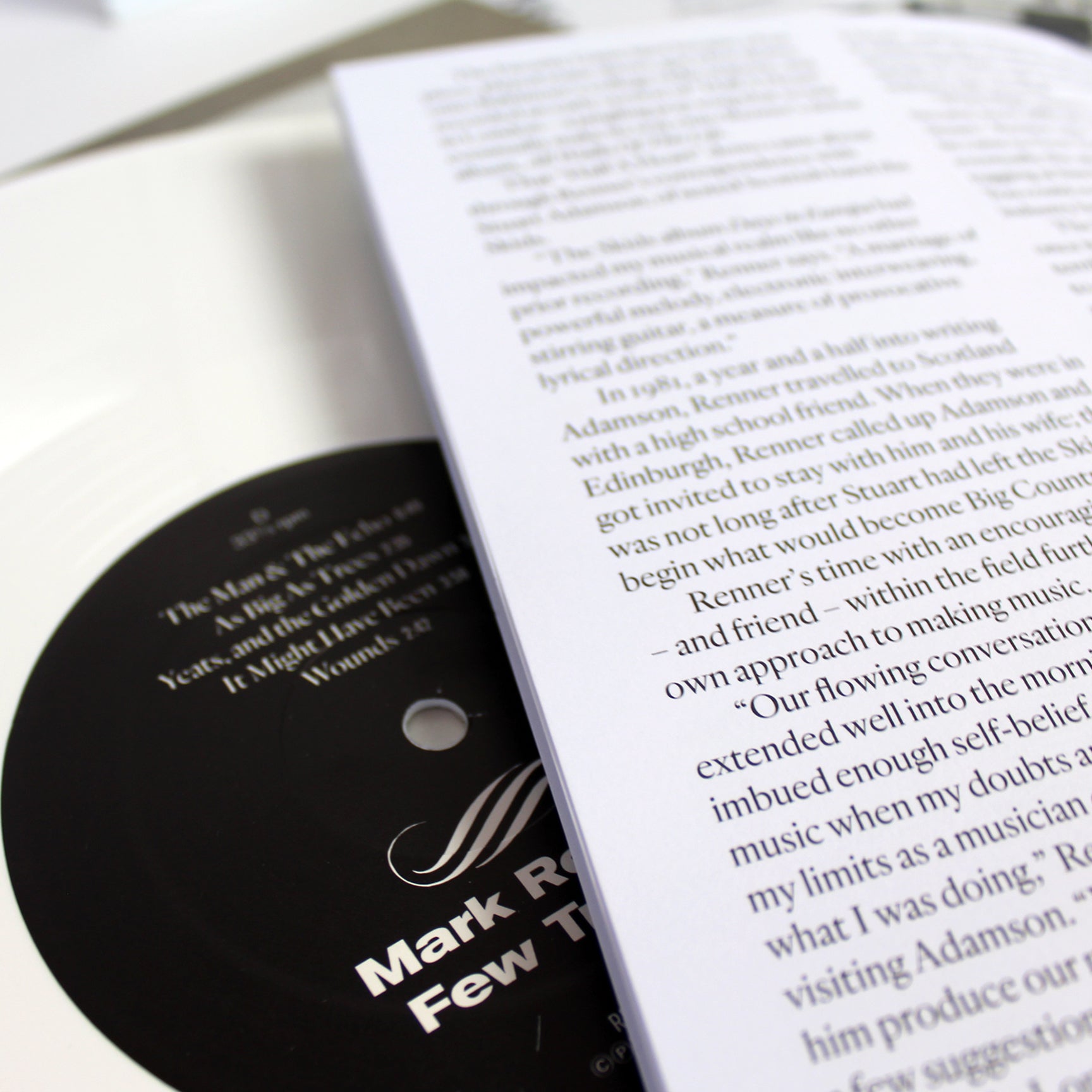 Most directly influential, Renner’s enthusiasm for Days in Europa, the third album by Scottish new wave band Skids, would lead to a correspondence and long-distance tutorship with Stuart Adamson. Before Adamson would achieve worldwide success co-founding the group Big Country, a chance friendship with Renner would impart great confidence in the young musician from Maryland, who, after a visit in Edinburgh, would then travel to London to demo an early version of “Half A Heart” featured in its final form on Few Traces.